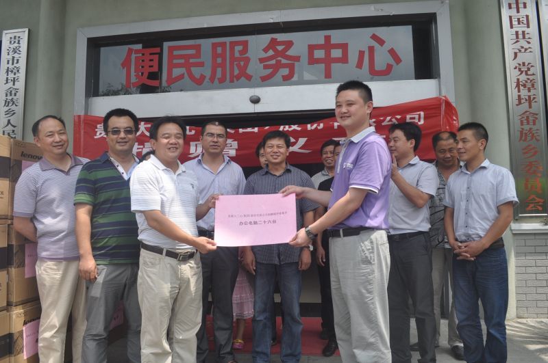8月12日,贵溪大三元(集团)股份有限公司为樟坪畲族乡捐赠价值10多万元的办公电脑26台,从而进一步完善该乡便民服务中心办公条件,促进该乡基层党建标准化项目建设。(乐新田)