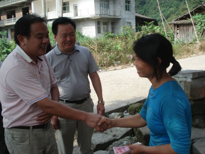 获悉她们的困境后,吴世军久久不能平静,心牵挂着她们的困苦病重。是日下午,他带着公司管理人员,首先走进黄有梅破旧的家,关切地询问其家庭生产生活情况和两个孩子的学习情况,并将1万元现金送到黄有梅手中。吴世军握着黄有梅瘦弱沧桑的手说:“今天送点钱来,是想尽自己所能帮你们渡过难关。希望你坚强地为两个孩子支撑起这个家,让孩子好好学习,改变命运,能从山间羊肠小道走出大山,走向外边的阳光大道,成为有用之才,将来回报家庭和社会。”他表示,公司将会不断关心、关爱黄有梅孩子的健康成长。对此,黄有梅激动地流下眼泪,声音哽咽地连连道谢,感谢好心人吴世军的关爱和帮助。