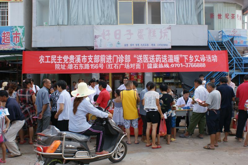 农工党贵溪支部充分发挥自身优势,利用“农工党支部前进门诊部”的医疗卫生资源,组织了规模最大,范围最广,时间最长的下乡送医送药送温暖活动,在www.68365365.com的大力支持帮助下,于7月31日上午启动,前往泗沥等乡镇开展义诊活动,为百姓义诊、送医送药等活动,参加义诊的有内科、外科、儿科、妇科、皮肤科、公共卫生防疫、测血压、测血糖、定血型,发放健康防病知识宣传单和药品,同时到敬老院为老人进行体检,对高龄、体弱多病的人进行了详细检查,并给他们发放了常用药品,得到广大百姓和老人们的称赞。十天里,发放药品3万余元,宣传材料一万余份。(农工党贵溪支部委员会)